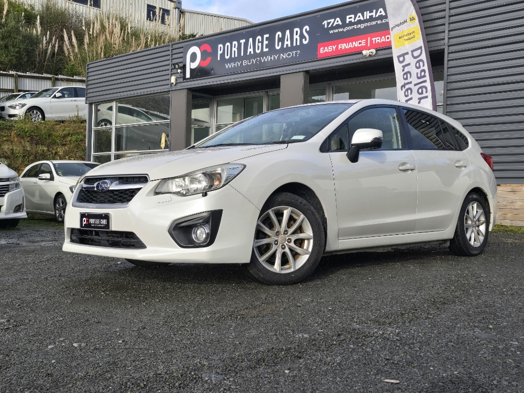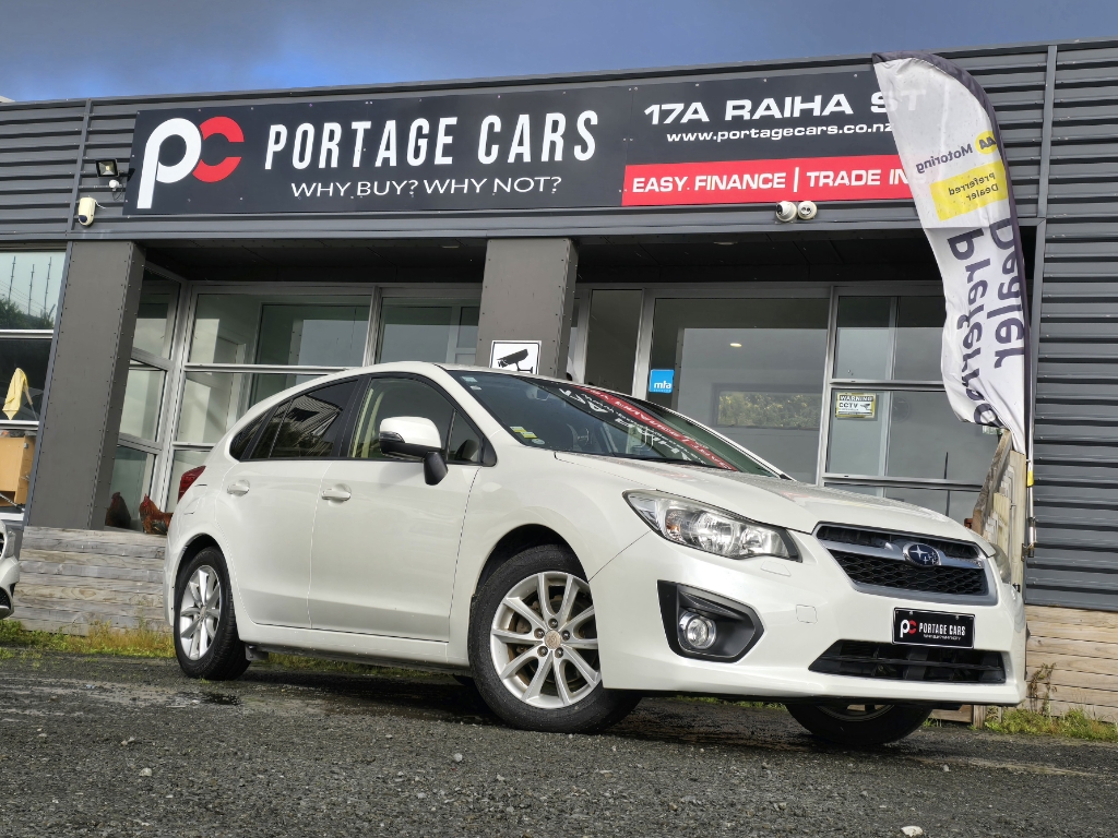 **2014 Subaru Impreza Eyesight AWD (Pearl White) | Safe, Stylish, and All-Wheel Drive** Portage Cars Ltd. is offering this **2014 Subaru Impreza Eyesight** – a premium AWD hatchback with advanced safety features, comfort, and performance. **Vehicle Details:** * **Model:** Subaru Impreza Eyesight AWD * **Year:** 2014 * **Color:** Pearl White * **Kilometres:** 93,834 km * **Engine:** 2.0L Petrol * **Transmission:** Automatic * **Features:** * **Symmetrical AWD** – Confident handling in all conditions * **EyeSight Safety System** – Advanced driver assistance * **Cruise Control** – Relaxed highway driving * **Full Leather Seats** – Premium interior finish * **Heated Seats** – Comfort in colder months * **Reversing Camera** – Easy parking * **Alloy Wheels** – Sleek and sporty look * **Electric Mirrors & Windows** – Everyday convenience * **Central Locking** – Security and ease **Why the Subaru Impreza?** * Legendary Subaru AWD capability for all-weather driving * Packed with comfort and safety features * A refined and reliable choice for daily driving or weekend adventures This Subaru Impreza is in excellent condition and ready for its next owner. A standout choice for those seeking safety, comfort, and performance in one package. Welcome to **Portage Cars** where we make car buying enjoyable with our *No Hassles, No Hustles* motto. As an **AA PREFFERED DEALER**, all our handpicked, high-quality vehicles are **AA Appraised**, **Odometer Verified**, and undergo a **43-point mechanical check**, giving you confidence and peace of mind. Check out our **HUGE** range of vehicles online or visit our friendly team at branches across NZ: **Auckland (New Lynn, Botany, Takanini), Bay of Plenty, Wellington & Christchurch.** **Why Choose Us:** - **AA Preferred and Appraised**: Odometer verified & 43-point mechanical/safety check - **Finance**: Same-day approval, $0 deposit, flexible 12–60 month terms, online or in-branch applications (TCs apply) - **Delivery**: Cheap rates NZ wide! Check our base rates below or enquire for specific delivery areas! - **Insurance**: Ultra competitive rates for both mechanical warranties & insurances