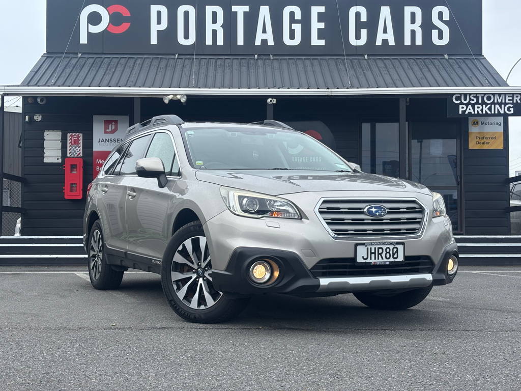 Subaru Outback 2015 Premium – NZ New 2.5i AWD in Champagne Silver A refined and capable SUV, this NZ New 2015 Subaru Outback Premium 2.5i is finished in elegant champagne silver. Powered by a 2.5L Boxer engine delivering 129kW and 235Nm, paired with a 6-speed Lineartronic CVT, it offers smooth and efficient performance. Subaru's Symmetrical All-Wheel Drive ensures excellent traction and stability across various terrains. The Premium trim boasts a suite of features including dual-zone climate control, heated front seats, a 10-way power-adjustable driver's seat with lumbar support, and a 7-inch touchscreen infotainment system with Bluetooth connectivity. Additional conveniences include keyless entry with push-button start, a power tailgate, and 18-inch alloy wheels. With its spacious interior, generous cargo capacity, and a 5-star ANCAP safety rating, this Outback is an ideal choice for families or those seeking a versatile and reliable vehicle. Welcome to **Portage Cars** where we make car buying enjoyable with our *No Hassles, No Hustles* motto. As an **AA PREFFERED DEALER**, all our handpicked, high-quality vehicles are **AA Appraised**, **Odometer Verified**, and undergo a **43-point mechanical check**, giving you confidence and peace of mind. Check out our **HUGE** range of vehicles online or visit our friendly team at branches across NZ: **Auckland (New Lynn, Botany, Takanini), Bay of Plenty, Wellington & Christchurch.** **Why Choose Us:** - **AA Preferred and Appraised**: Odometer verified & 43-point mechanical/safety check - **Finance**: Same-day approval, $0 deposit, flexible 12–60 month terms, online or in-branch applications (TCs apply) - **Delivery**: Cheap rates NZ wide! Check our base rates below or enquire for specific delivery areas! - **Insurance**: Ultra competitive rates for both mechanical warranties & insurances