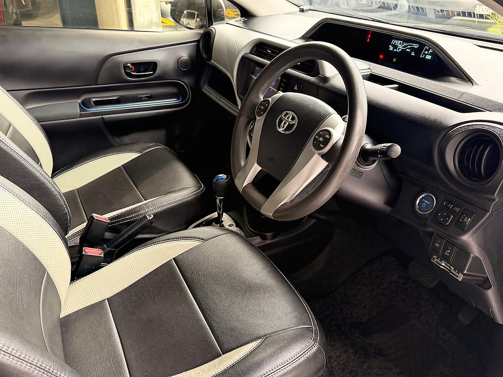 Introducing the 2013 Toyota Aqua in a sleek grey color. With only 90780 kilometers on the clock, this car has been well-maintained and is in excellent condition. It boasts a powerful 1496 CC petrol engine and an automatic transmission for a smooth and effortless driving experience. This Toyota Aqua comes equipped with a range of convenient features, including a smart key with push start technology. This means you can easily access and start your car without fumbling for your keys. The car also comes with stylish leather seat covers, adding a touch of luxury and comfort to your ride. One of the standout features of this car is the reverse camera, making parking and maneuvering in tight spaces a breeze. With a clear view of what's behind you, you can confidently navigate through any situation. The power steering further enhances the driving experience by providing precise and effortless control over the vehicle. This makes driving on busy city streets or long highways a comfortable and enjoyable experience. Overall, the 2013 Toyota Aqua is a reliable and stylish car with all the necessary features to make your driving experience a pleasure. Don't miss out on the opportunity to own this fantastic vehicle. Contact us today to schedule a test drive and experience it for yourself!
