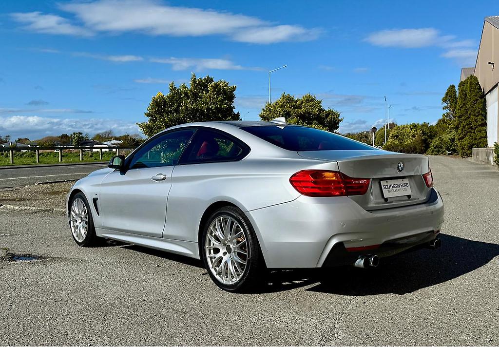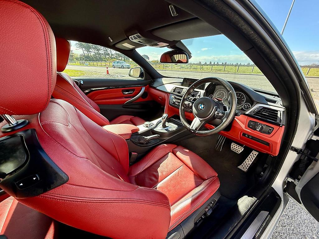 ** 2 keys - full dealer history ** Just arrived this 2015 BMW 420i M-Sport coupe. Finished in Glacier Silver Metallic with Coral Red leather Interior this is a unique vehicle . Having travelled just 62,000 Genuine Km's from brand new this is great buying. * Full M-Sport package which includes M Aerodynamics package , M Leather steering wheel and adaptive M Suspension. * 2.0 L turbo charged engine producing 135kW/270Nm * 8 speed Tiptronic with paddle shift * 19" Alloy's and 4 Brand new tyre's * Combined fuel consumption of 6.1 L per 100 Km's * BMW factory carpet mats * Adaptive cruise control with speed limiter' * Heated front seats * Lane departure warning * Reverse camera * Multiple airbags with 5 star safety * Traction control * Electric memory seats * Individual high gloss satin chrome '( exterior ) * Individual anthracite roof lining * Interior and exterior mirror package * Xenon Headlights * Bluetooth connectivity and streaming * Rain sensing wipers and automatic headlights * Electric mirrors and windows And so much more .