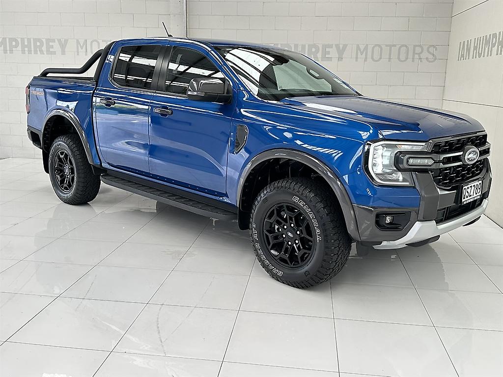 2.0L 150kW 500Nm bi-turbo i4 diesel 10 speed automatic Dual range 4WD + Auto4 (Same as Platinum) 17" Tremor alloys Wheel arch extensions External reservoir Bilstein suspension Unique Tremor grille Running boards LED daytime running lights Privacy glass Sports bar Keyless entry & push button start Tremor vinyl seating Powered front seats Tablet style 10" colour touchscreen Dual zone climate air con Sat Nav Front & rear parking sensors Reverse camera SYNC 4A with Bluetooth connectivity Active cruise control Adaptive auto headlights Lane departure warning Terrain control Trailer backing assist 8 x airbags Deck liner Tow bar Fresh WOF & service Balance of factory warranty applies to 2029 Low mileage Blue Lightning example in lovely condition