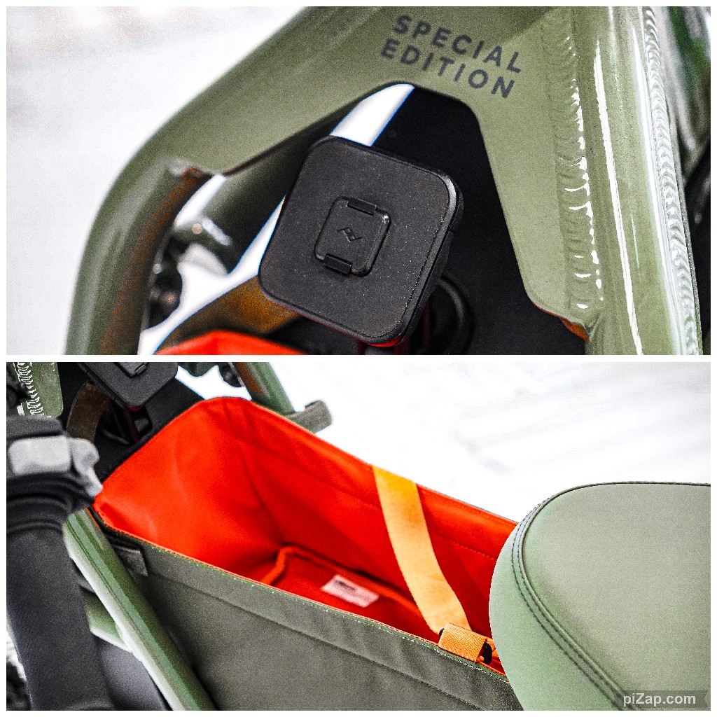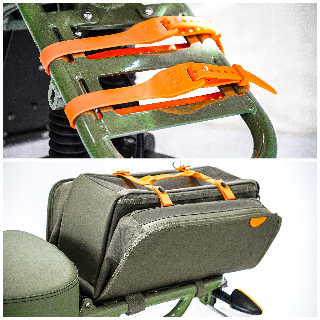 - Removable weather proof rear storage bag