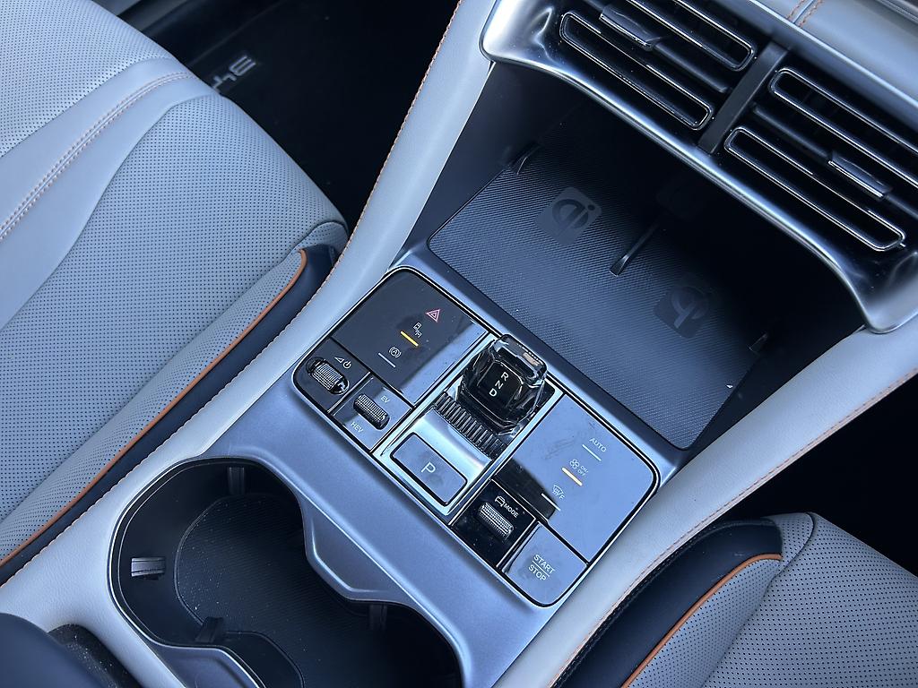 A large 15.6" rotating touchscreen with wireless Apple CarPlay and Android Auto, plus wireless charging.
