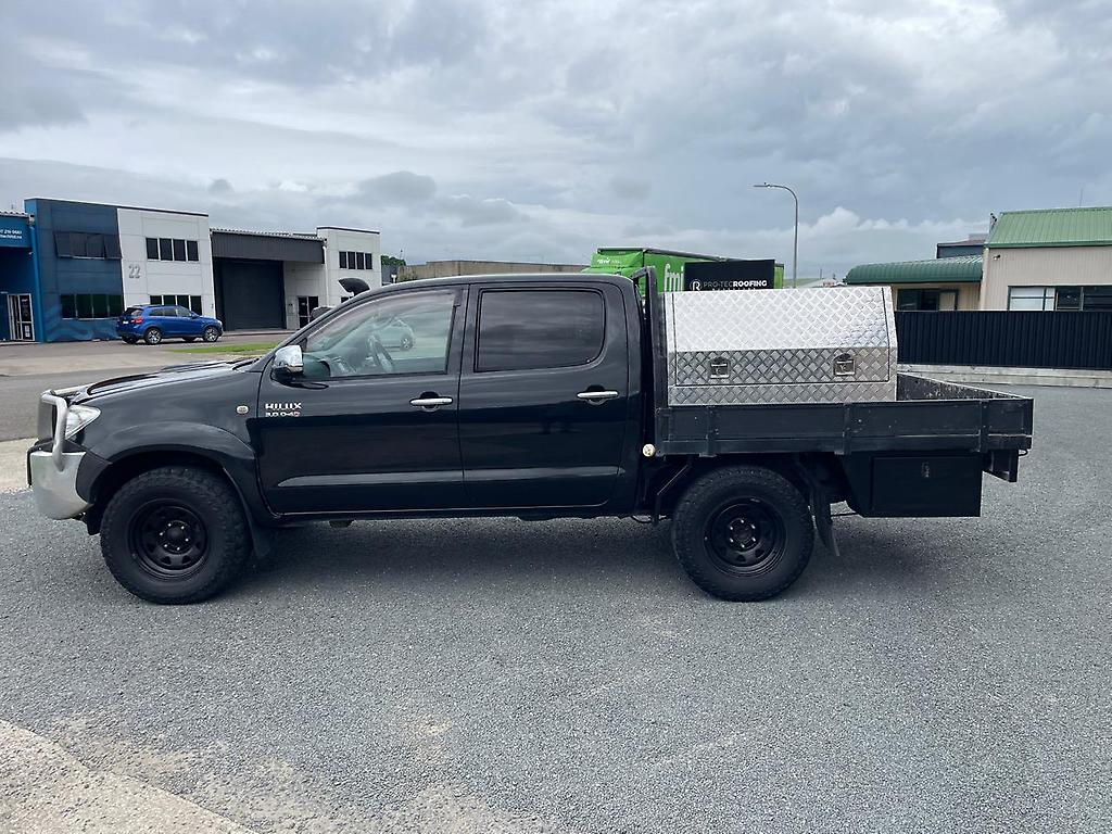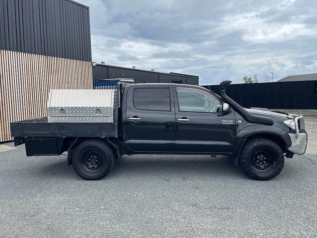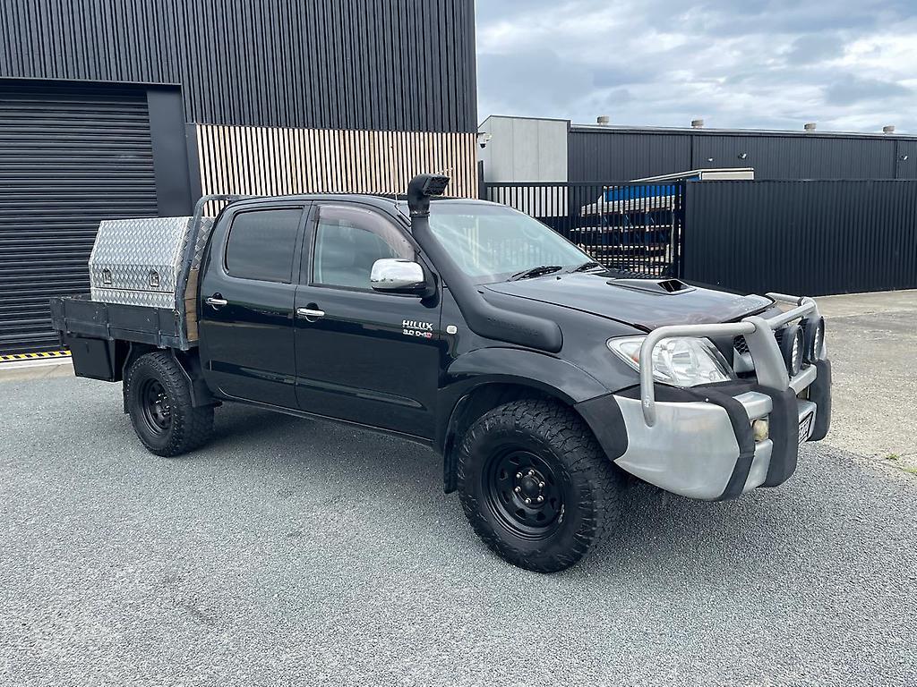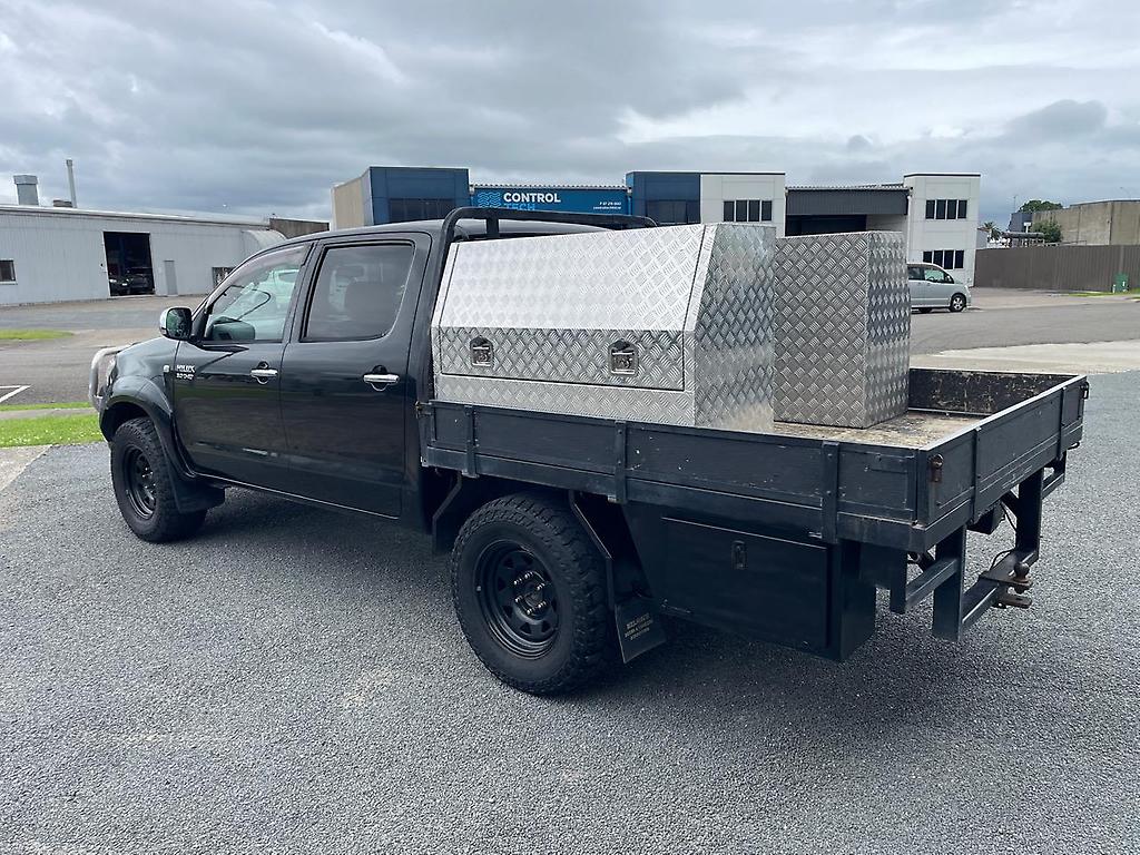 2011 NZ NEW Toyota Hilux SR5 4X4 Double Cab flatdeck ute with 4 toolbox's. 3 litre Intercooled Turbo Diesel engine and 5 spd manual 4WD gearbox. Just had a fresh lube, oil and filter service. 8 airbag's and ABS braking with EBD. Loaded with extra's : A/M alloy front bar assy. Bonnet Protector. Snorkel. Black Steelie's with A/T tyre's. Quality built Flatdeck with 2 large locking alloy toolboxes on top (with shelve's) and 2 smaller rear mounted toolboxes underneath at the rear. Tow Bar assy. NZ NEW and travelled just 203,000 km's!! New WOF. Over 7000 km's of RUC in credit. In great condition. Ready for work! Finance available from NO DEPOSIT (T.A.P.) Most trade-in's considered.