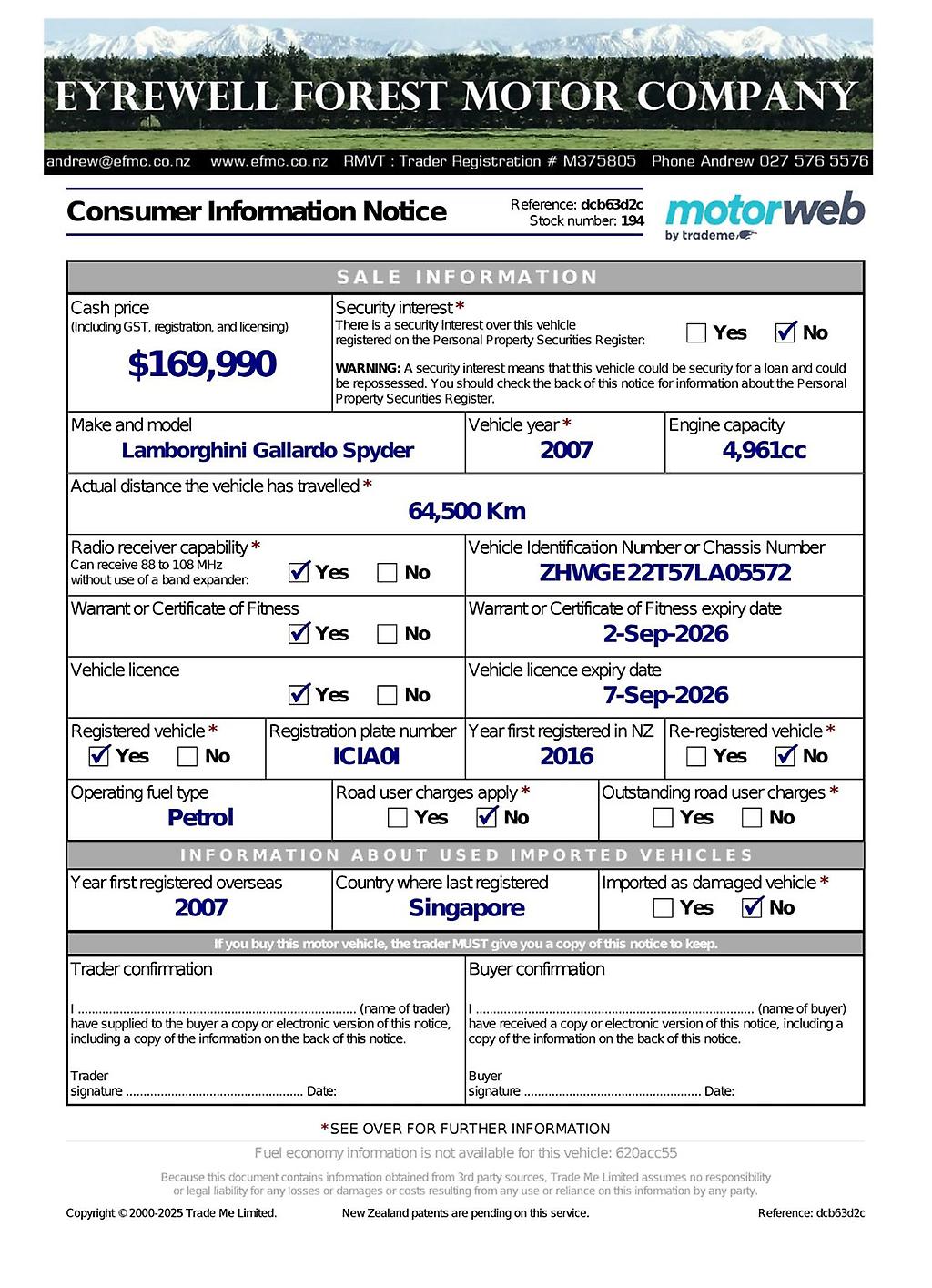 Top spec with hydraulic front lift, dual climate, reverse camera etc.