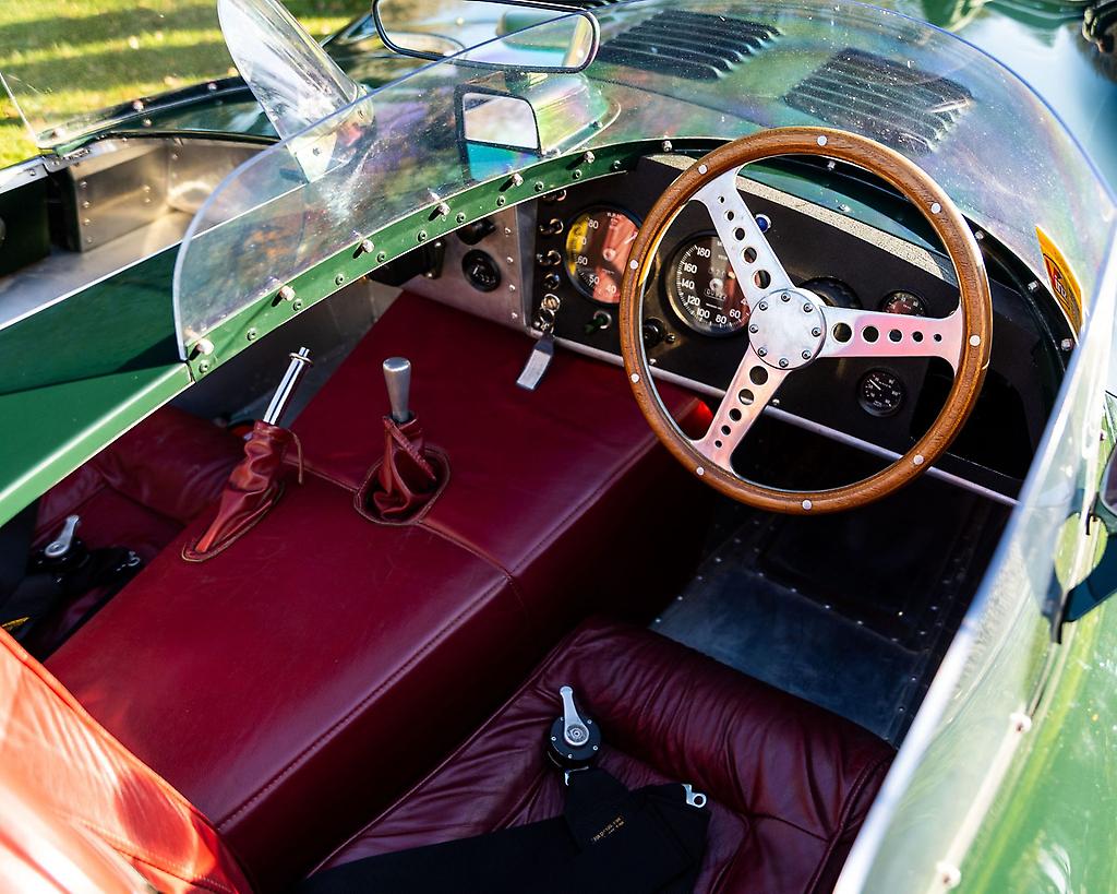 Powered by a modern day, finely tuned 4.2 Litre Jaguar Straight Six DOHC engine putting out circa 300hp coupled to a 5 speed Borg-Warner gearbox and weighing in at just over 800kg this car is an absolute rocket, not for the faint hearted.
