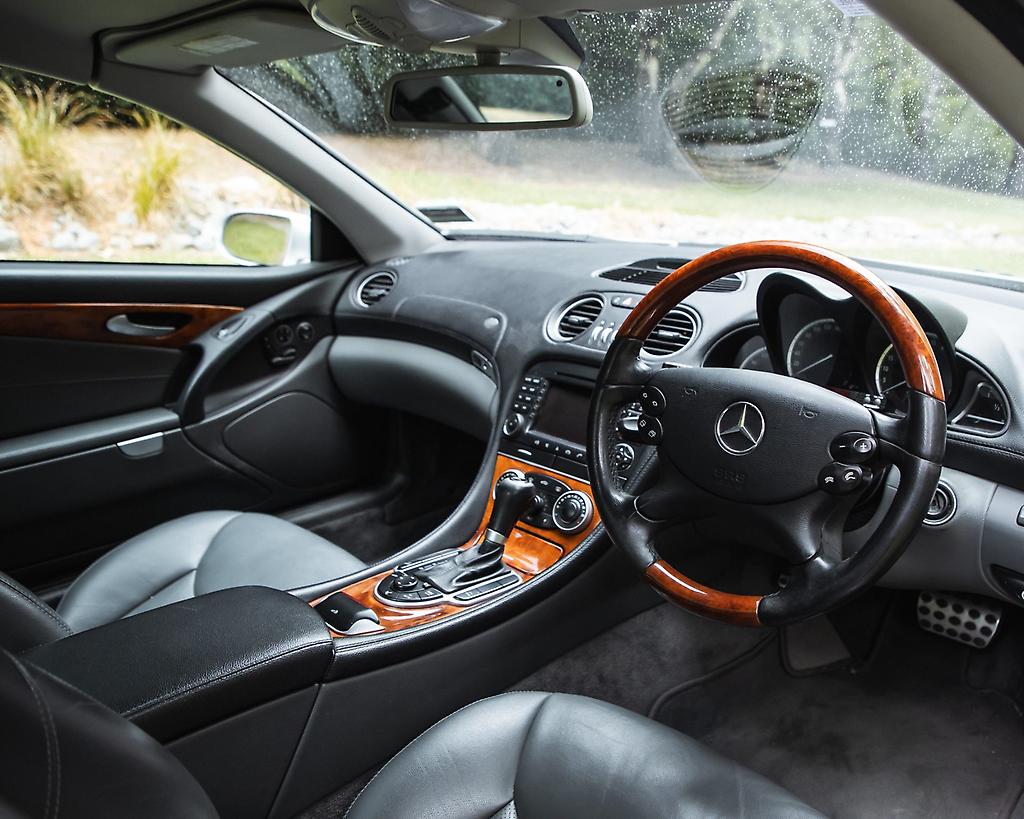 Slide into this SL500 and you instantly remember why the early-2000s Mercedes roadsters were the gentlemans express of their time. The silver paint still carries that quiet confidence not shouting, just smirking while the black leather cabin wraps around you like a well-tailored jacket thats seen a few great stories and is ready for more.