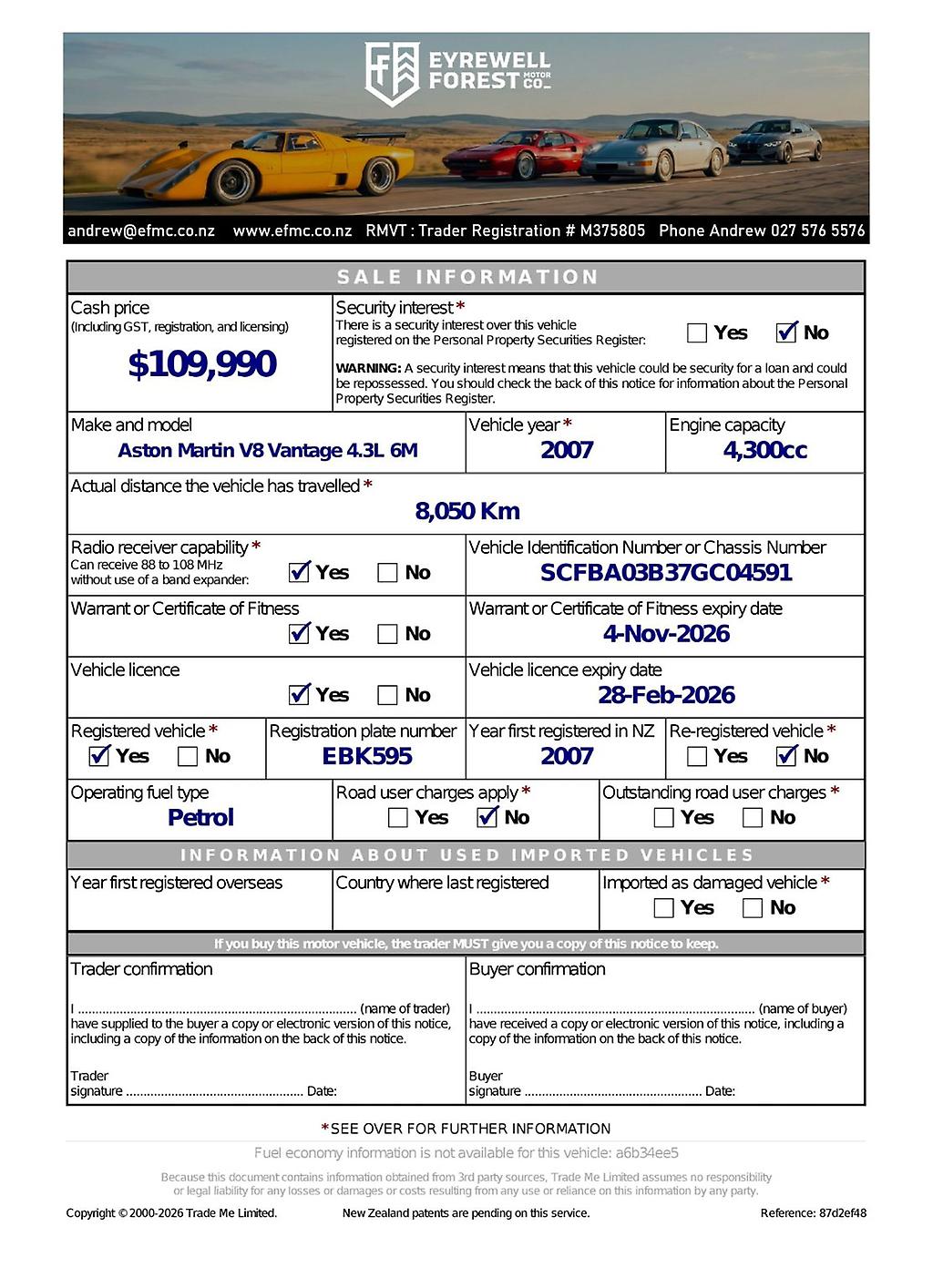 This example remains factory original, right down to the feel and character the only update being brand-new Michelin Pilot Sport tyres, fitted just 500 km ago. Its also been freshly serviced at Aston Martin Giltraps Christchurch, so its not just beautiful, its sorted.