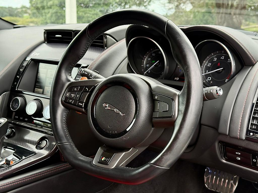 The 2014 Jaguar F-Type R blends unmistakable British style with a driving experience thats both visceral and refined. Beneath its sculpted bonnet, a 5.0-litre supercharged V8 unleashes 404kW (550PS) and 680Nm, launching you from 0-100km/h in just over four seconds. Finished in crisp white, its sleek curves and athletic stance hint at its performance the moment you press the start button.