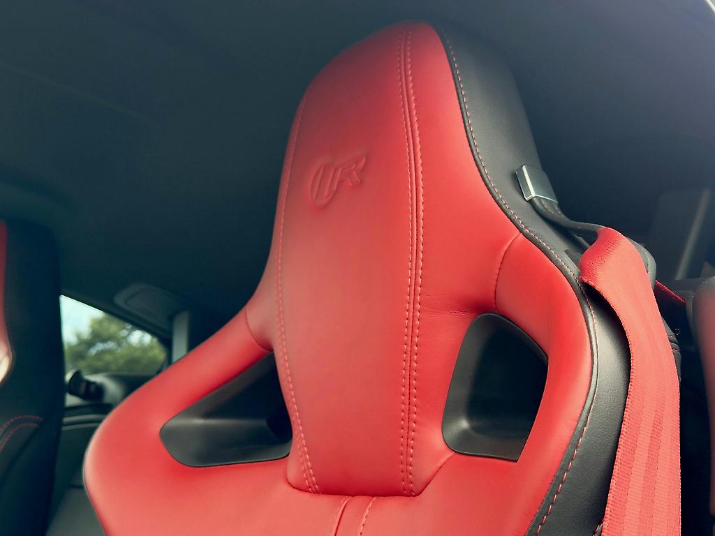 Inside, black and red leather wraps around a cabin built for the driver. Every surface feels deliberate, every control within easy reach, and the view over the long bonnet serves as a constant reminder of the power at your command.
