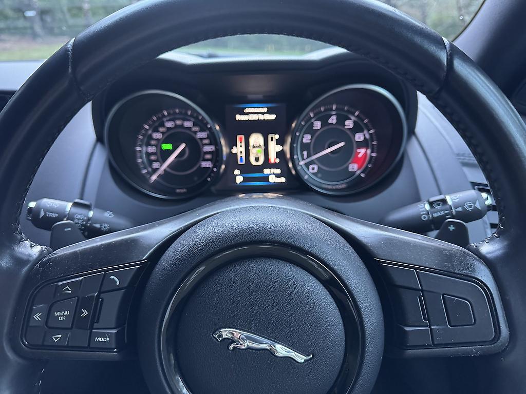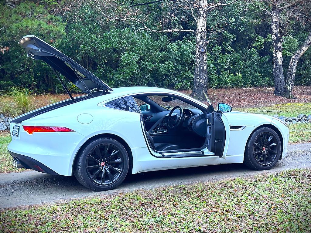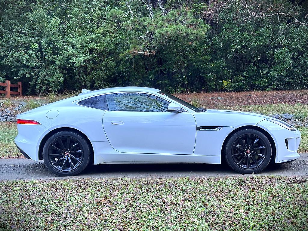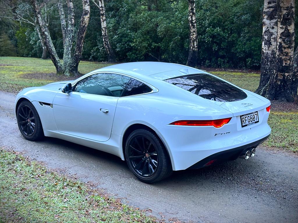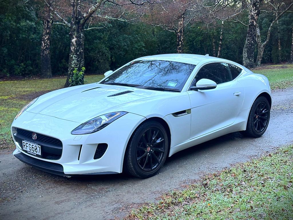 The Jaguar F-Type 3.0 V6 Supercharged in pristine white is a striking blend of elegance and power. Its sleek, aerodynamic silhouette is accentuated by bold, black 20-inch alloy wheels, creating a sharp contrast against the crisp white bodywork. Under the hood, the supercharged 3.0-liter V6 engine delivers an exhilarating performance, producing 340 horsepower that propels the car with effortless precision and a distinctive growl.