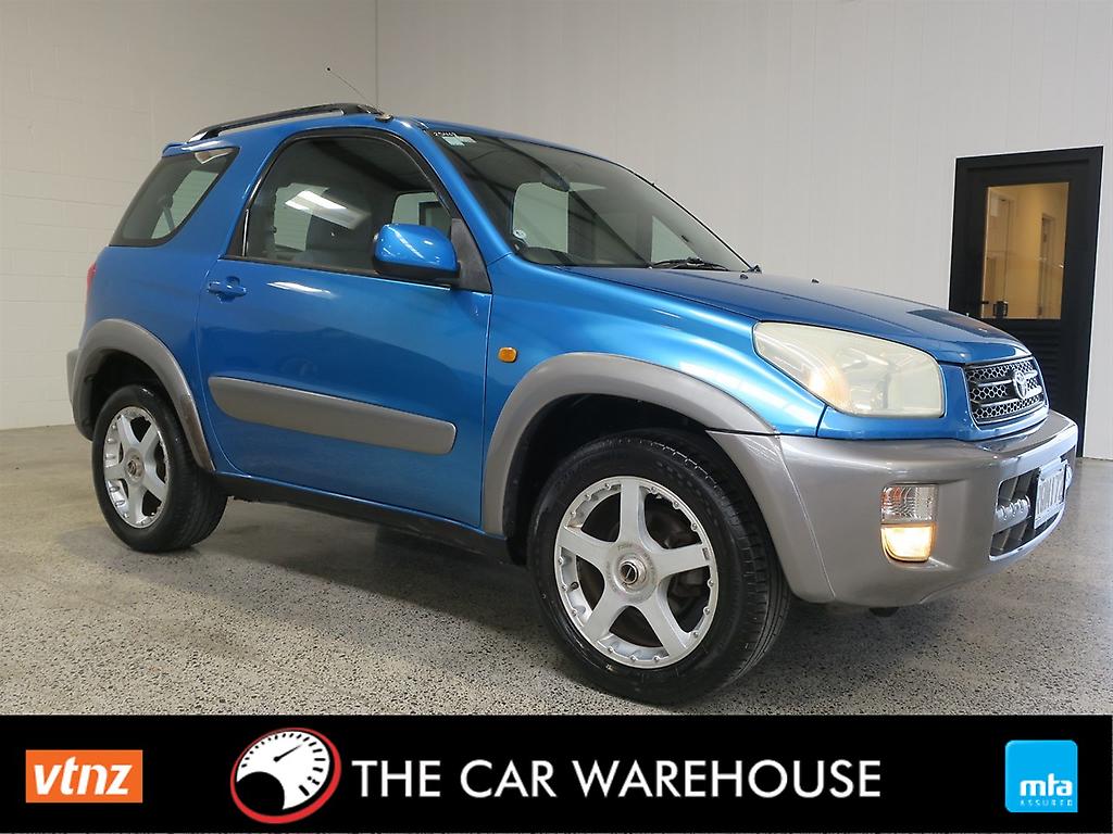 AVAILABLE NOW! ***NO DEPOSIT FINANCE AVAILABLE FROM $67 P/WK*** STOCK #25468 - 2000 TOYOTA RAV4 'LIMITED' MODEL - RARE 3 DOOR - 2.0 PETROL 4WD - NZ NEW - WIDEBODY - CAM CHAIN RELIABILITY (NO CAMBELT) - ALLOYS - SPOILER - ROOF RAILS - FRESH SERVICE - NEW WOF CRISP IN TWO TONE BLUE, THIS WIDEBODY RAV4 IS IN STOCK AND NOW AVAILABLE. NZ NEW, 3 DOOR AND 4WD... THIS IS A TIDY EXAMPLE AND DRIVES WELL. AUTO, ALLOYS AND CAM CHAIN RELIABILITY... THIS IS VERSATILITY, ECONOMY AND DURABILITY AT ITS BEST. TOYOTA RELIABILITY FOR TOTAL PEACE OF MIND AND GETTING HARD TO FIND. BE QUICK! FINANCE In house finance manager to tailor a package to suit your budget Competitive rates Flexibility with 6 to 60 month terms Already approved? Let us try and better it for you Standard terms and conditions apply*** MECHANICAL WARRANTIES Fully Autosure and Provident Approved Peace of mind with 1, 2 or 3 year options 24/7 nationwide roadside assistance TRADE INS We welcome all trades. Please contact us with the details of your vehicle. OUT OF TOWN BUYERS Not a problem, we offer an airport pick up service. NATIONWIDE DELIVERY Door to door anywhere in NZ at competitive rates WHO ARE WE? The Car Warehouse is a 100% GENUINELY KIWI OWNED AND OPERATED, boutique vehicle wholesaler, offering vehicles to the public at GENUINE wholesale prices. Vehicles are sold strictly on a first in, first served basis. Unless pictured all vehicles are sold with one key and note audio systems in all import vehicles can be problematic. We are open Monday to Friday 9am - 5pm, Saturday 10am - 4:00pm. M321833