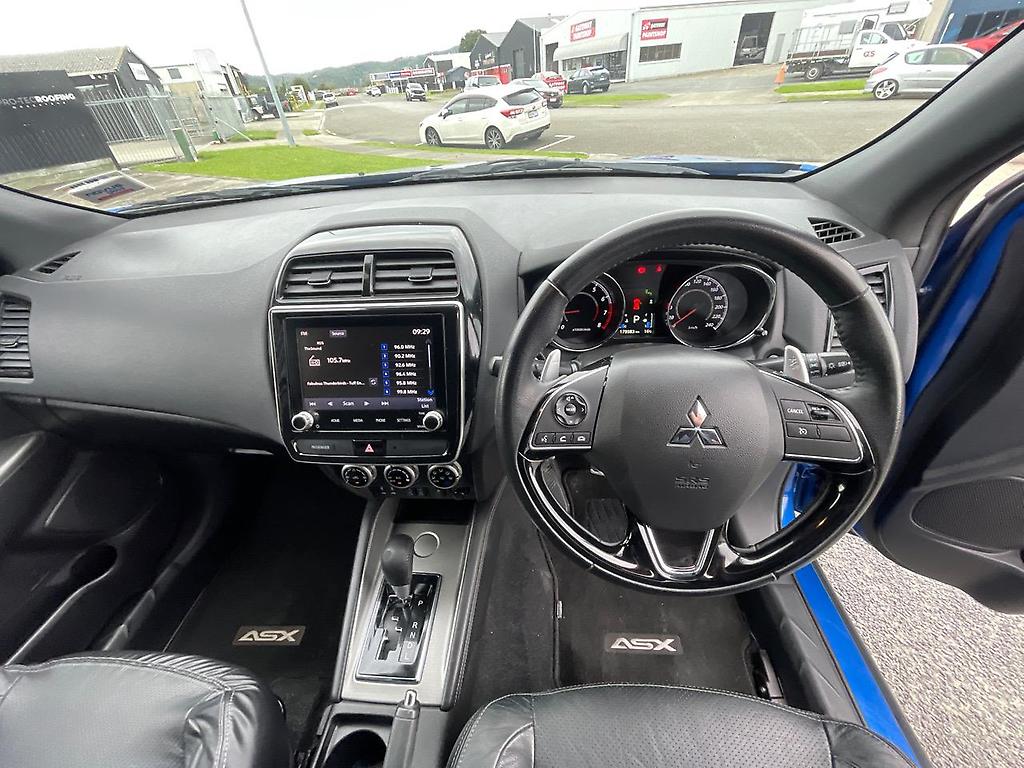 2020 NZ NEW Mitsubishi ASX VRX FWD SUV. 2.4 litre 16 valve DOHC (camchain) engine and 6 spd CVT automatic transmission. 9 airbag's (including drivers knee) , ABS braking with EBD, traction control, lane departure warning and frontal impact warning give this car a 5 star (out of 5) safety rating. Top spec VRX with leather interior, heated front seat's (and driver electric adjust) , glass roof (with electric blind) , larger alloy's and the larger 2.4 litre MIVEC engine. New shape ASX VRX with all the bell's and whistle's including large screen infotainment system and reverse camera. Stunning in Sky Blue. Finance available from no deposit (T.A.P.) Most trade-in's considered.